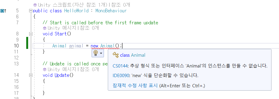 추상 class를 생성해서 쓸려고 new Animal();하면 에러가 남