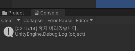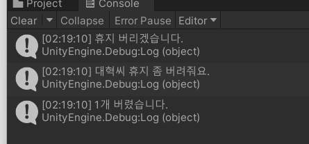 Debug.Log("안녕하세요. 전 쓰레기통입니다.");