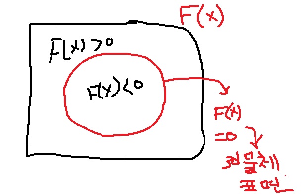 고차원의 함수 F(x)에 대하여 F(x)=0인 부분을 표현하면 3d물체의 표면이 될 것