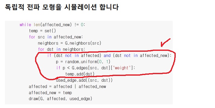 독립 전파 모형에서 확률적 감염을 어떻게 코딩하는지가 생각보다 재밌는데