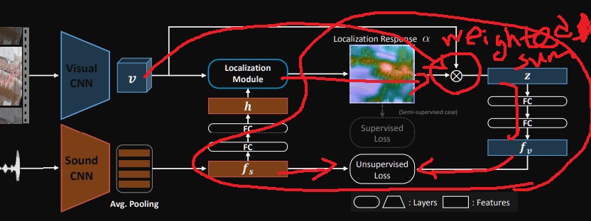 둘을 weighted sum을 해버리면 이미지내에 존재하는 sound feature를 encoding한 것이나 다름 없다!