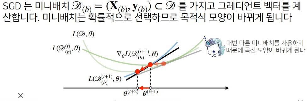 매번 목적함수가 달라지면서 일반적인 경사하강법과는 다른 그래디언트 벡터가 나오겠지만