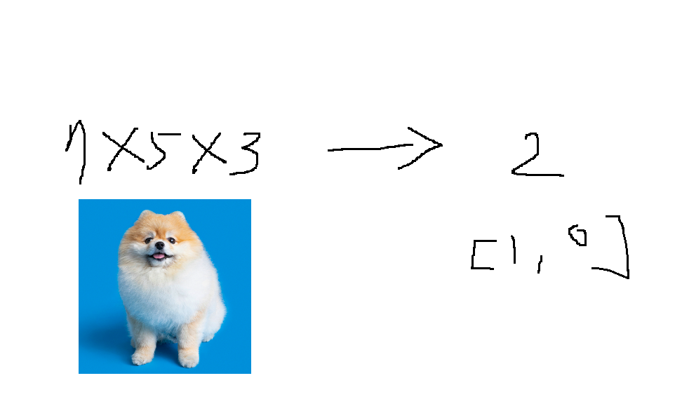 개 아니면 고양이는 (1,0) , (0,1)의 2차원 one hot vector로 표현할 수 있다.