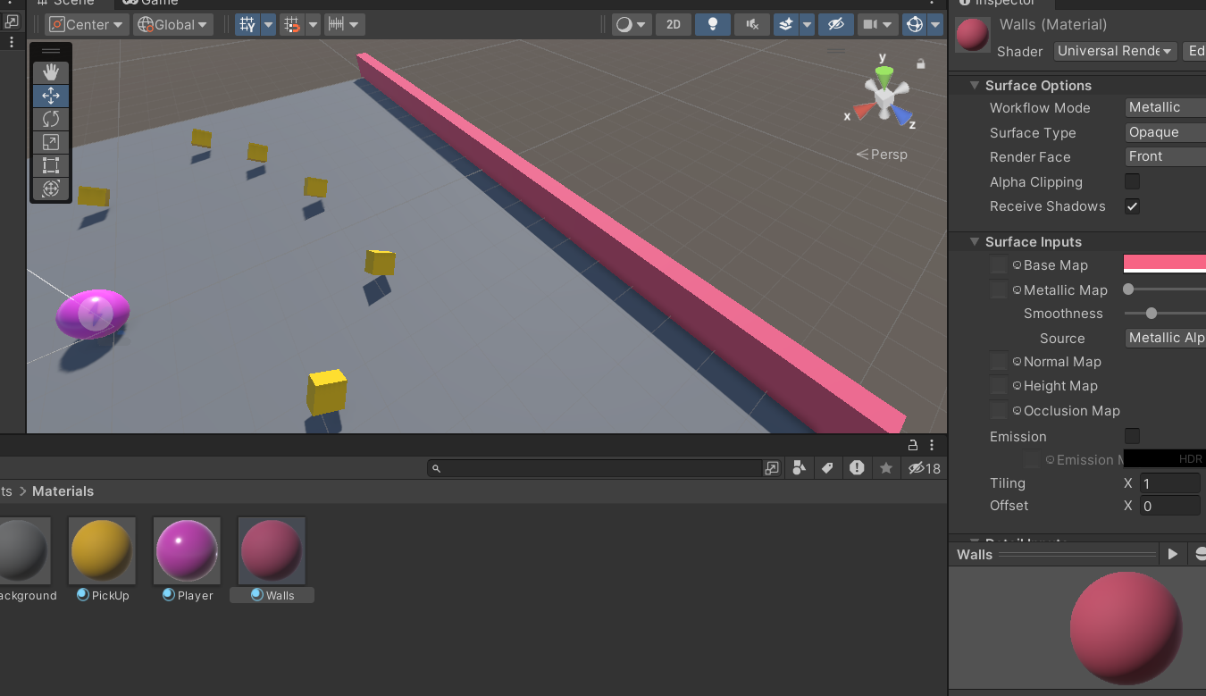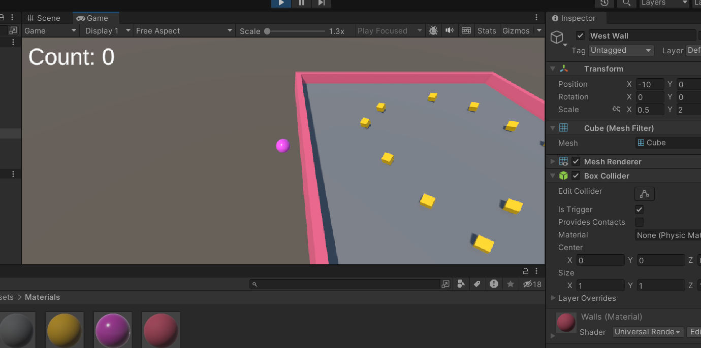 materials를 만들어서 벽이 구분되도록 색도 바꿔주자