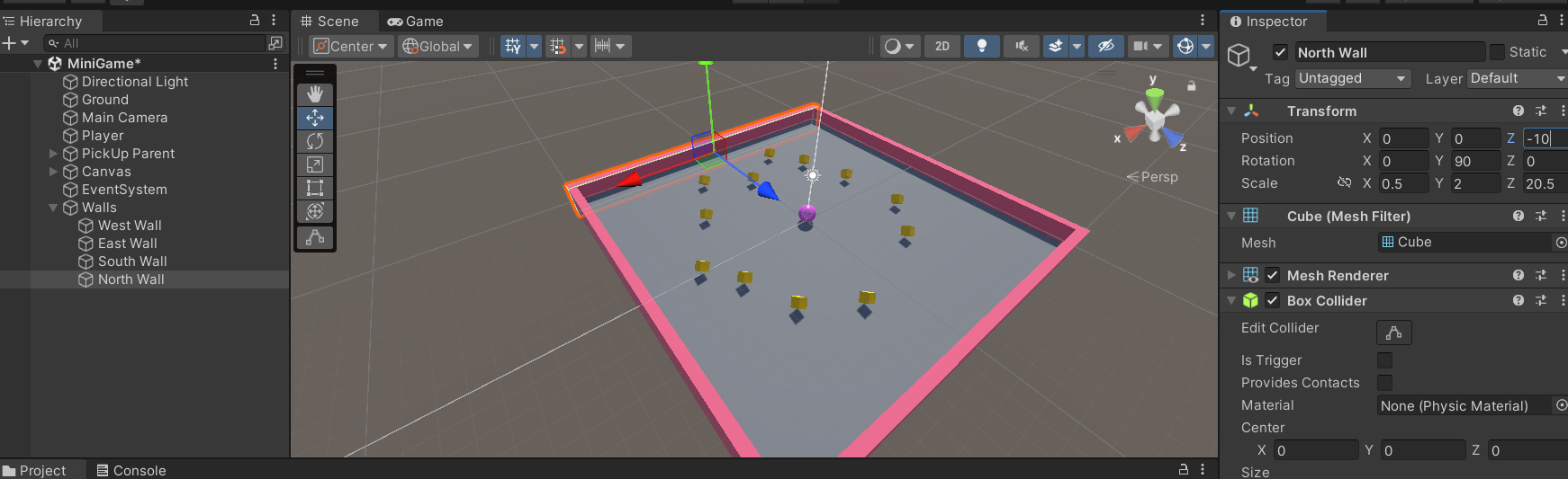scale을 조정해서 벽을 만들거니까 게임판의 크기에 맞춰본다