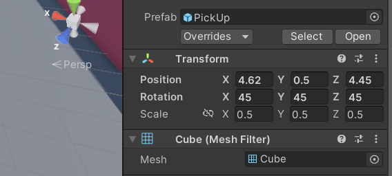 Rotator라는 script를 만들고 pickup 오브젝트에 붙여준다