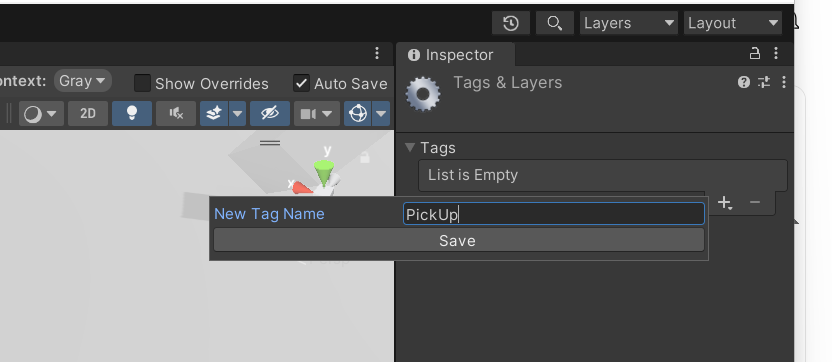 Tags & Layers에서 +부분을 누르고 PickUp이라고 이름 쓴 다음 Save로 저장