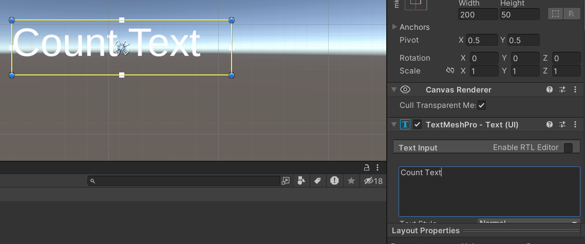 Text Input 쪽에 Count Text라고 바꾸면, text 내용이 바뀐다.