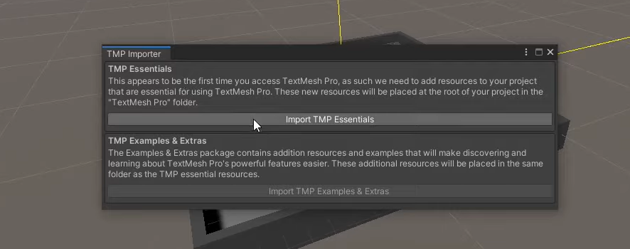 Import TMP Essentials로 TextMesh Pro의 필수 요소 설치