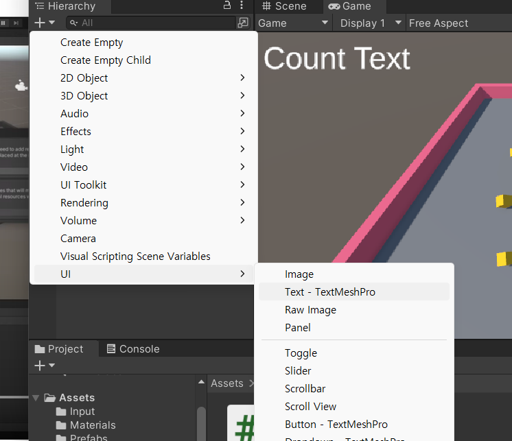 UI와 TextMesh Pro를 사용하여 수집한 오브젝트 수를 화면에 표시할 수 있다