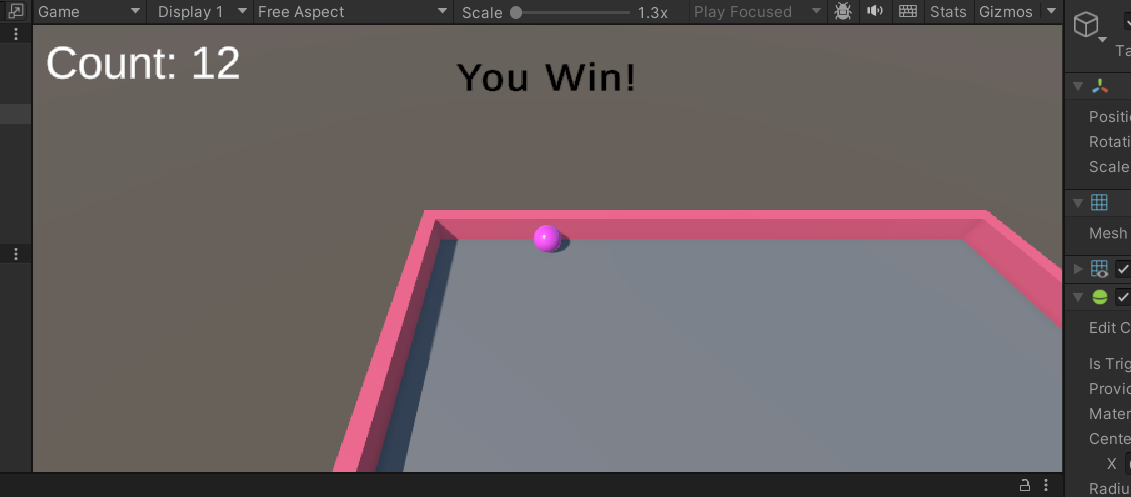 비슷하게 모든 오브젝트를 수집하고 게임을 끝내는 텍스트도 만들어볼 수 있다