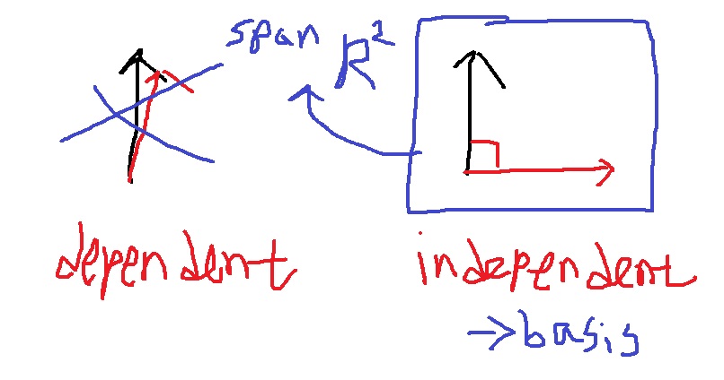 vector들이 dependent여서 서로 겹치면 space를 만들수 없는데