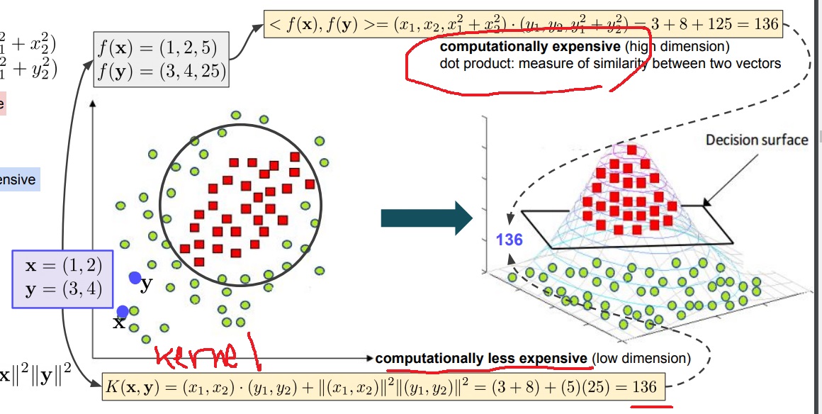 이 말은 x,y를 고차원 f(x),f(y)로 보내지 않고도 그냥 x,y만 안다면 <f(x),f(y)>를 계산할 수 있음을 의미한다