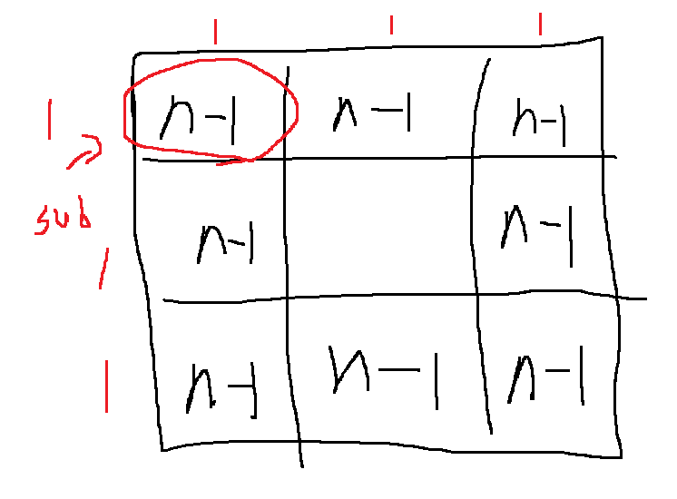 K = N이면 .. $3^{K} * 3^{K}$인 사각형에서, $3^{K-1} * 3^{K-1}$로 9개 사각형을 나누고
