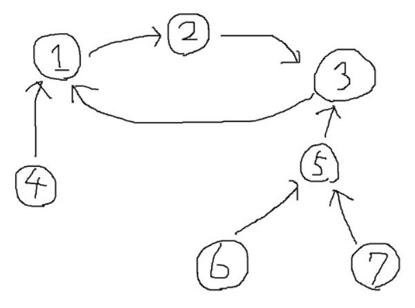 edges = [(4,1),(1,2),(2,3),(3,1),(5,3),(6,5),(7,5)]