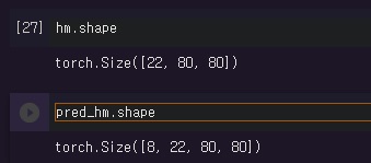 pred_hm은 차원이 8*22*80*80인 tensor이고 사실 이것은 22*80*80이 8개 있는 것이다