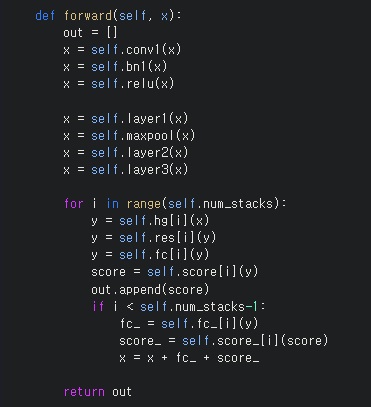 forward pass에 재밌는 부분이 out=[]로 리스트를 반환한다는 것