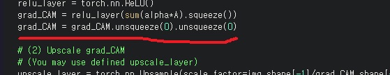 중간에 grad_CAM의 shape를 찍어보면 실제로 2d라는 걸 확인할 수 있음