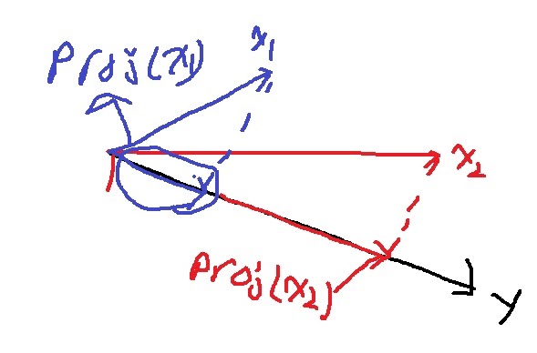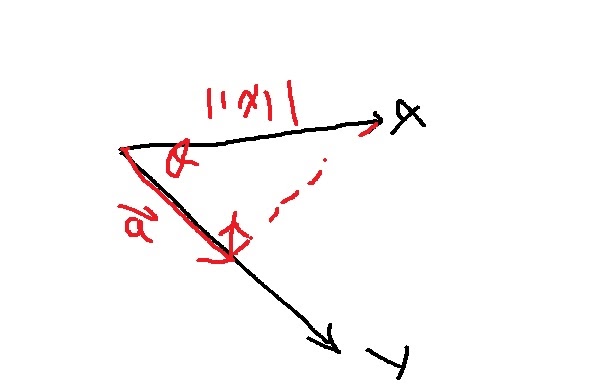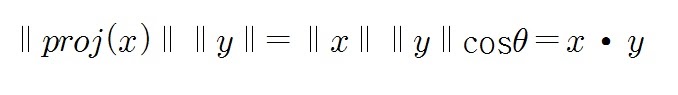 그렇다면 x,y의 내적은 x의 정사영벡터 크기에 벡터 y의 길이를 곱한 것이 된다.