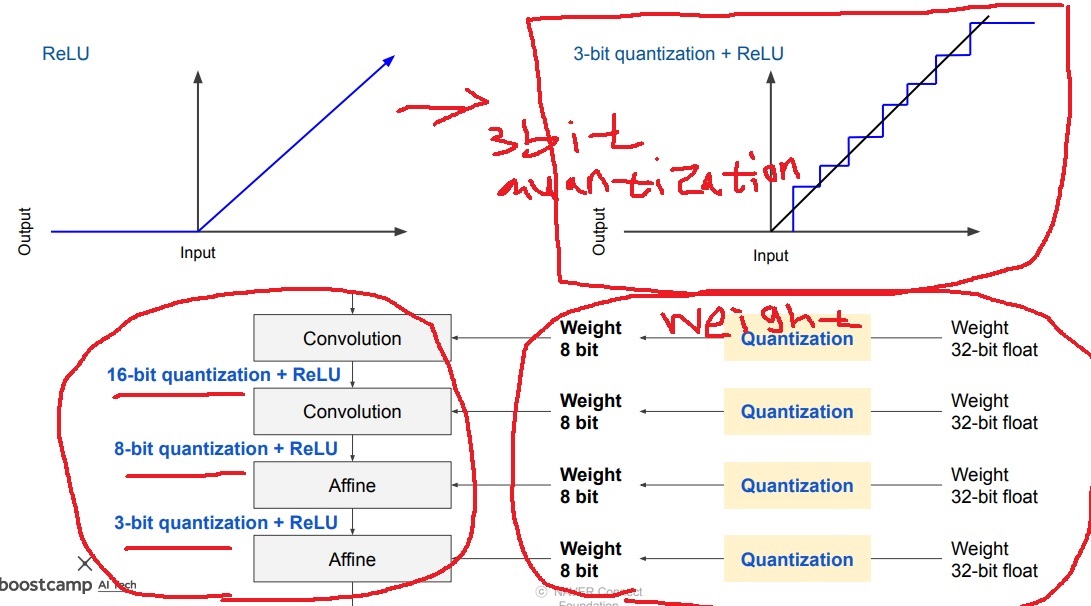 위 그림을 보면 weight에 모두 8bit로 quantization을 하고 activation 3개에는 모두 다른 16bit, 8bit, 3bit quantization을 하고 있다