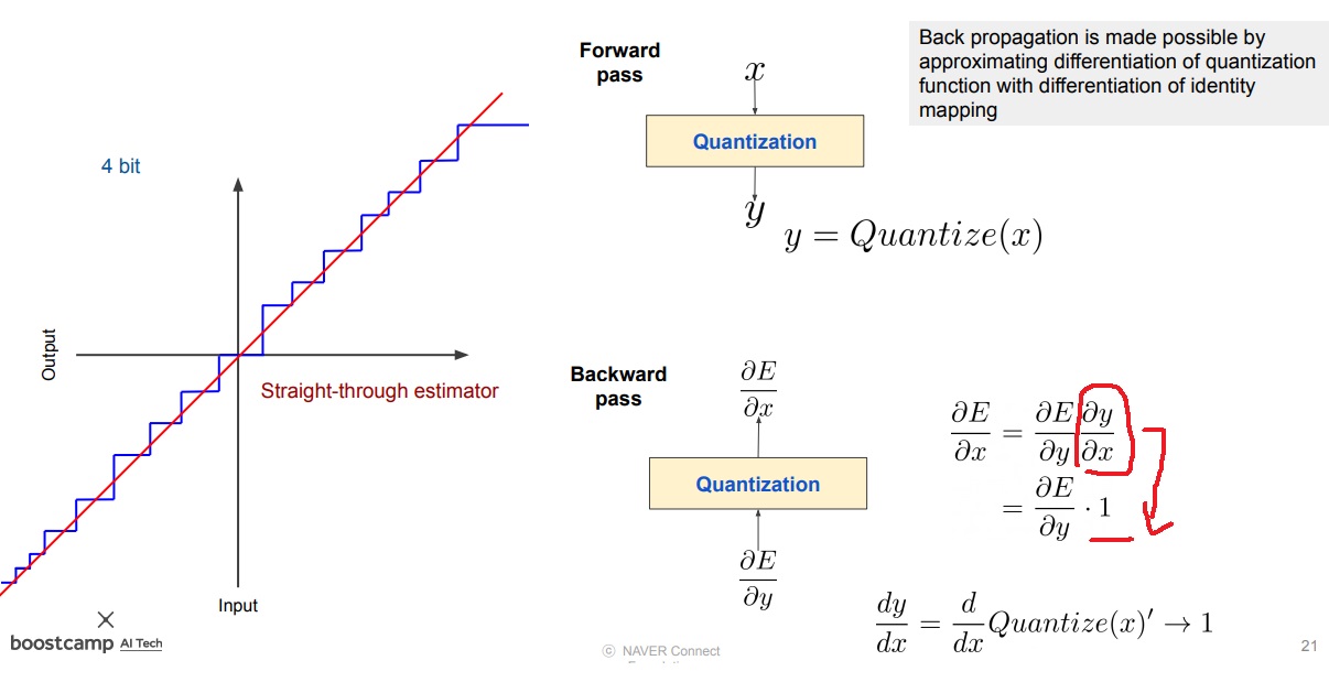 위의 경우 원래는 y=x라서 quantization하기 전에 함수로 미분하면 1이 되는 것 같아