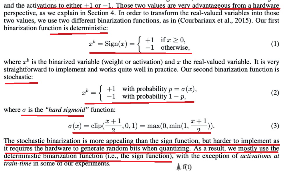 구체적으로 train time에서 binary로 quantize된 weight와 activation을 사용하여 parameter gradient를 계산함