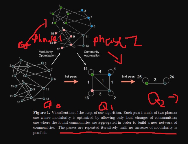 이 때 최대로 modularity가 증가하는 이웃 j가 있을 것인데 그곳에 i를 포함시킨다.