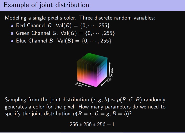 확률모형 r,g,b ~ P(R,G,B)을 생각하자.