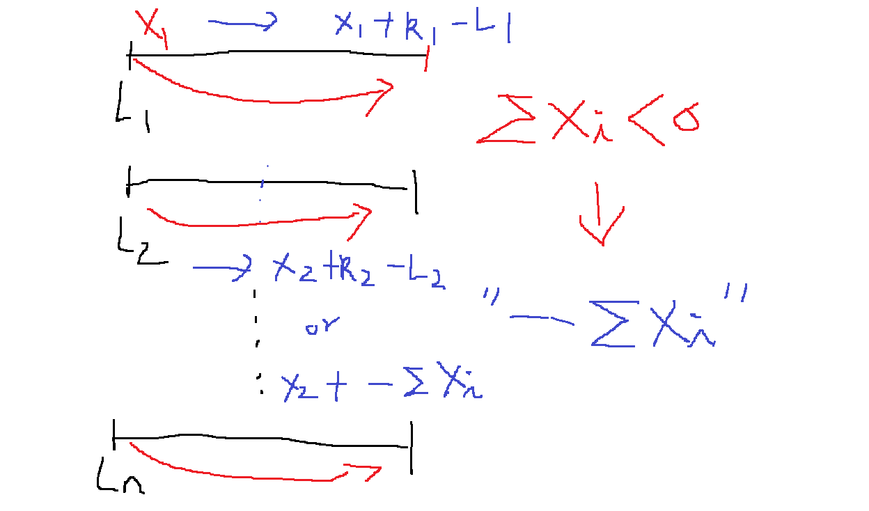 모든 i = 1,2,3...,n에 대해 $X_{i} = L_{i}$으로 초기화해두면 반드시 $\sum_{i = 1}^{n} X_{i} <= 0$이다.