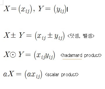 같은 차원을 가지는 두 행렬은 대응하는 성분끼리 연산이 가능하다