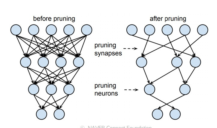 이미 학습된 network에서 중요도가 낮은 parameter를 제거하여 model의 size를 줄이고자 하는 작업