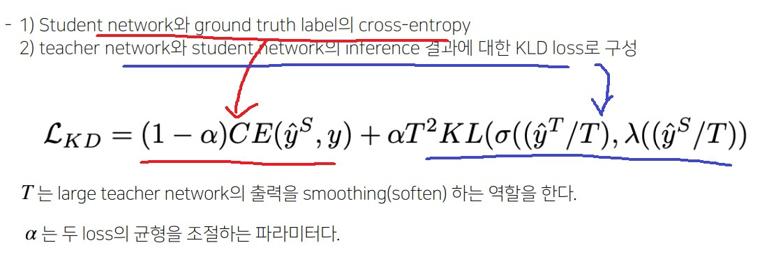두 loss의 합을 최종 loss로 사용하여 student model의 training을 수행함