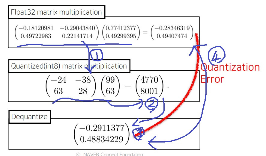 실제 quantization하지 않고 계산한 4번과 비교하면 어느정도 오차가 있는데 이것을 quantization error라고 부름