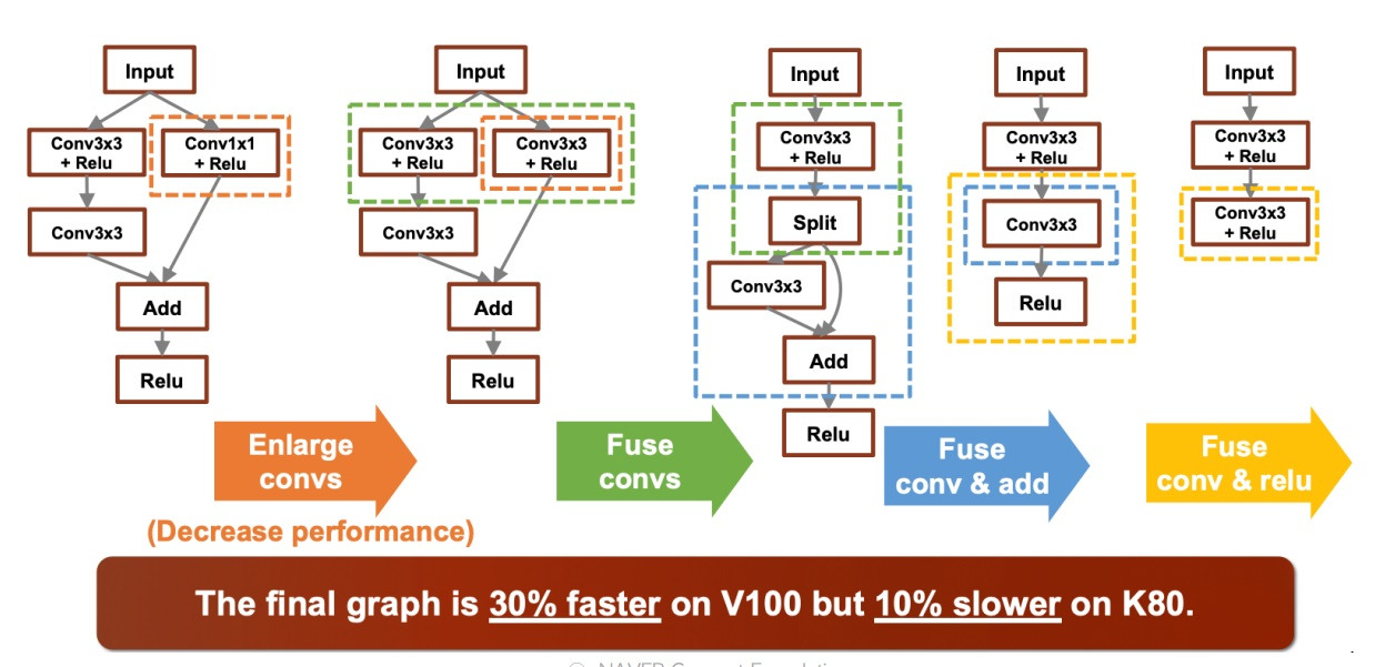 근데 layer fusion 조합차이가 아니라 V100이랑 K80은 특징 자체가 다르니까 동일회사랑 무관하게 성능 차이가 나타나는건 당연한거 아냐?