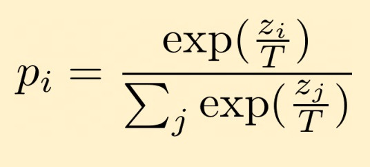 위 그림이 knowledge distillation에서 사용된 변형된 softmax function의 정의를 나타내는데