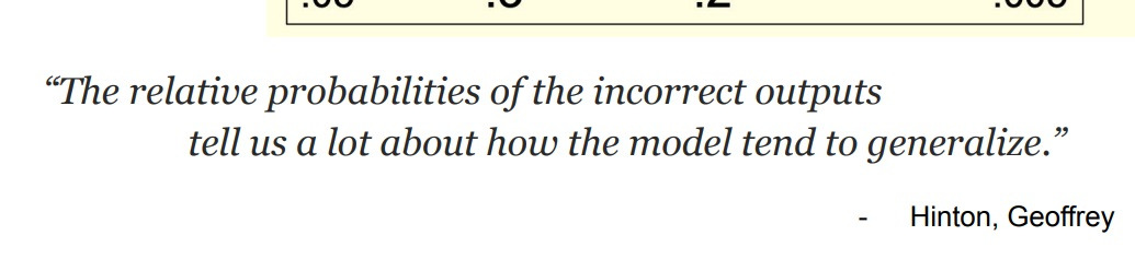 부정확한 output(고양이,차,소 등등)의 상대적인 확률을 보면 model이 어떻게 generalize하는 경향이 있는지 알려준다