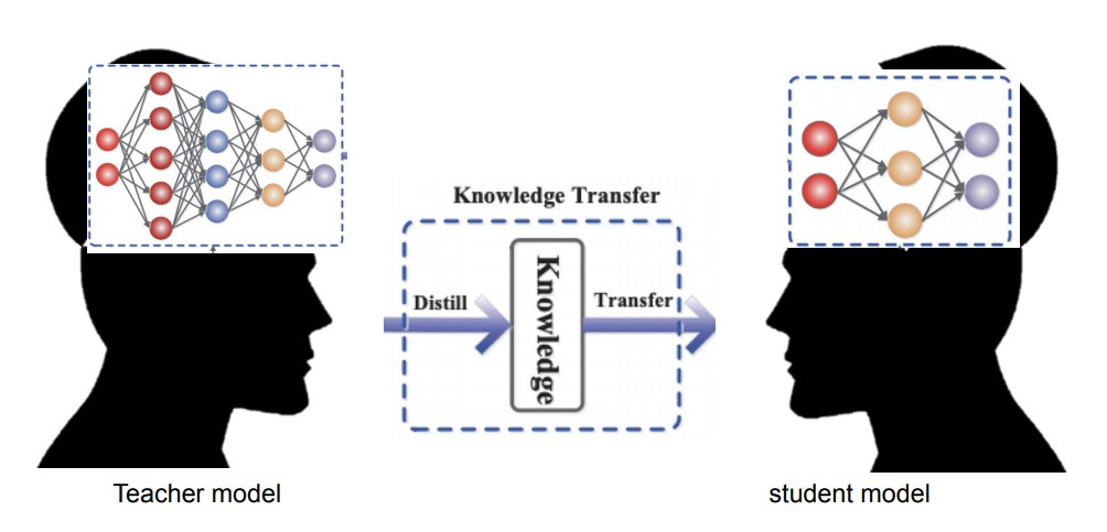 상대적으로 큰 teacher model이 배운 지식의 엑기스를 뽑아 상대적으로 작은 student model로 전달하고자 하는 것