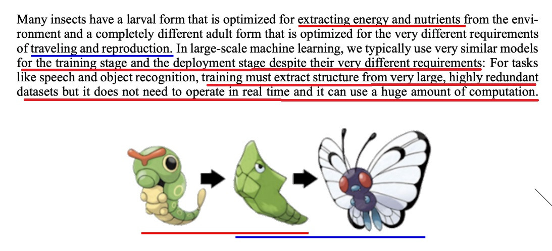 training단계에서는 애벌레가 번데기가 되기위해 에너지를 잘 흡수하던것 처럼 주어진 대용량의 데이터로부터 구조와 지식을 잘 흡수해야함