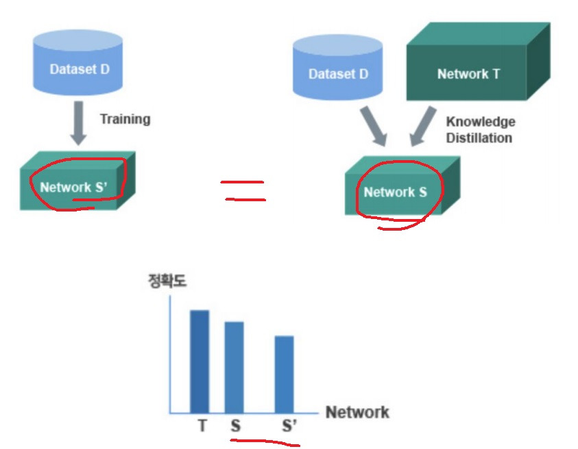 비슷한 논리로 knowledge distillation은 불순물이 섞인 여러 지식을 어떠한 방법을 통해서 엑기스만 뽑아 작게 만들어 작은 network에 전달하자는 방법