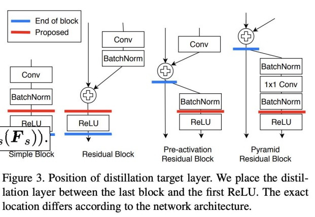 이 논문은 ReLU 이전에 layer를 놓아 feature를 뽑은 뒤 teacher와 student사이 거리를 비교하자