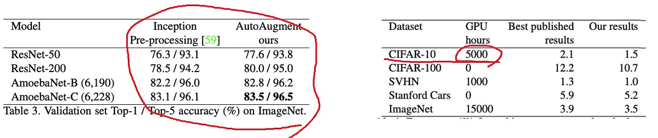 성능은 1%정도 오르는데 CIFAR10만 해도 최적의 augmentation을 찾는데 5000시간이라는 학습에 매우 큰 자원이 소모됨