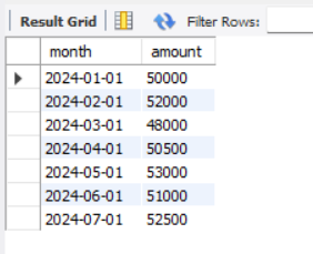 select month, amount,