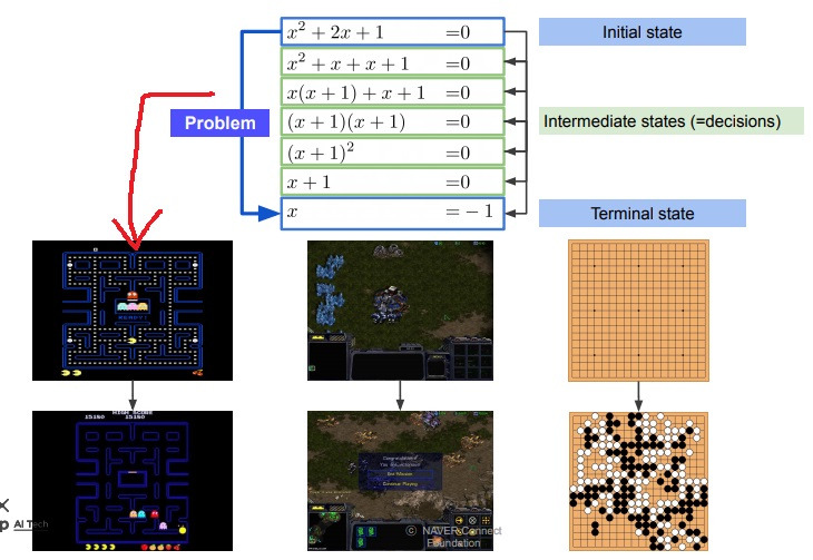 팩맨 게임, 스타크래프트, 바둑 같은 것도 initial state에서 terminal state로 나아가는 problem solving 과정이다.