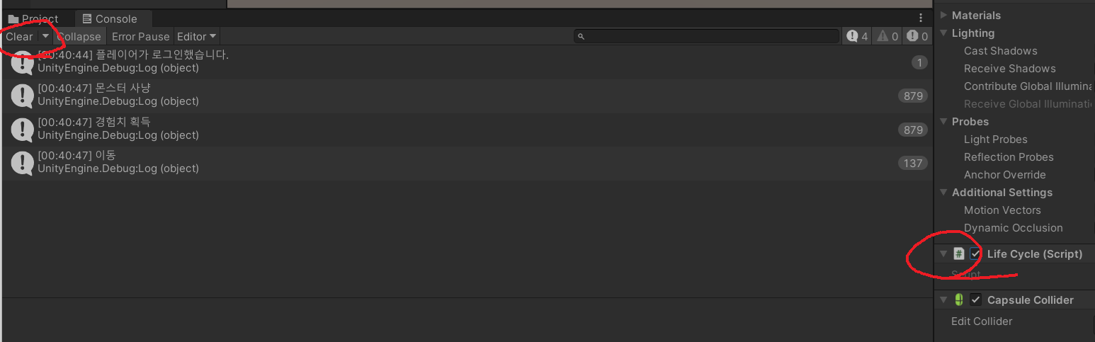 로그 클리어하고 나서 다시 켜보면 로그인했습니다 후에 업데이트 실행되는