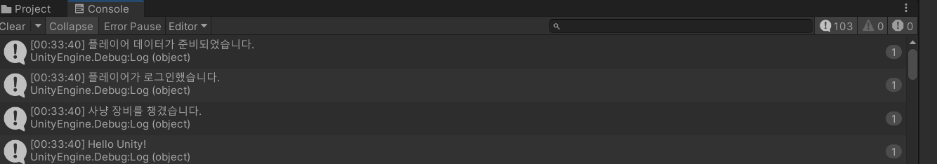 Debug.Log("플레이어가 로그인했습니다.");