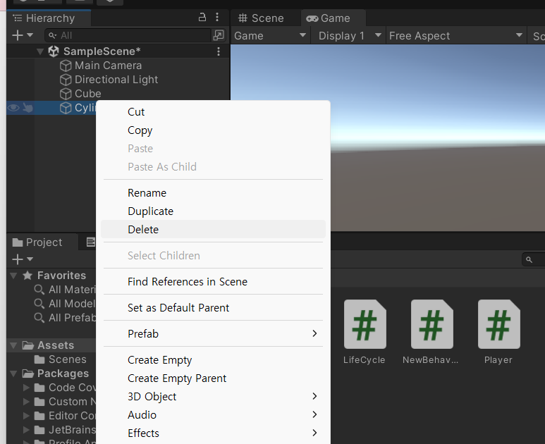 스크립트 실행하고 오브젝트를 삭제해본다