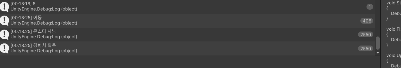 Debug.Log("경험치 획득");