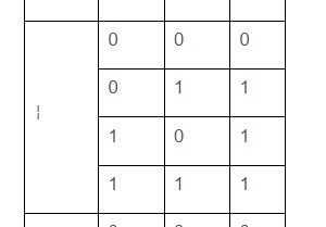 첫번째 열 0과 두번째 열 1이 만나면 세번째 열 1이 된다.