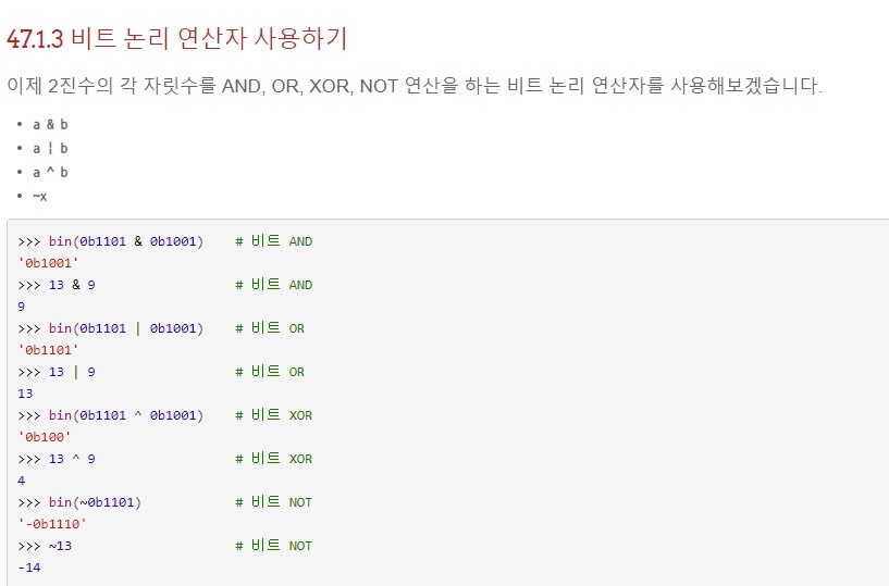 그리고 그런 연산을 한 10진수를 bin()을 이용하면 2진수로 바꿔줌