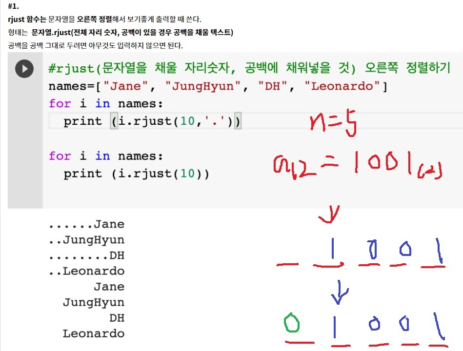 rjust를 이용해서 역시 한줄로 앞에 0을 붙이는게 가능